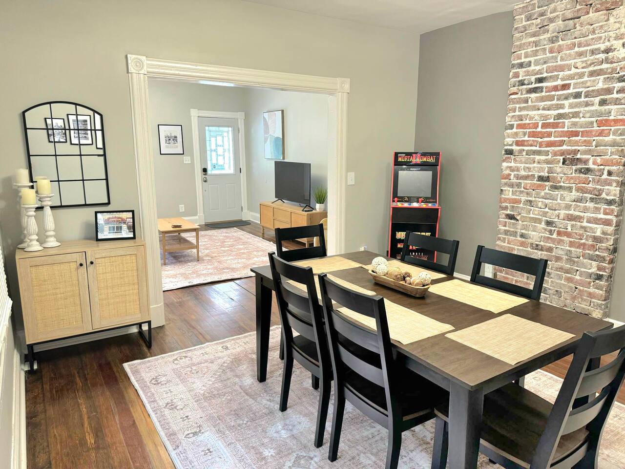 This 3BR, 2BA home with 5 beds sleeps up to 9 guests! Steps from Downtown Indianapolis, the Convention Center, and Lucas Oil Stadium. You'll love having easy access to top attractions like Gainbridge Fieldhouse, the Indianapolis Zoo, and the best local restaurants and nightlife. Featuring a spacious living area, smart TVs, arcade machine, Wi-Fi, washer/dryer, fenced yard & covered porch. Perfect for small or large groups! Book your stay today and experience the best of Indianapolis!